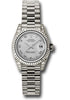 26mm 18K white gold case, case lugs set with 24 diamonds, fluted bezel, silver dial, Roman numerals, and President bracelet.