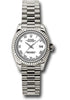 26mm 18K white gold case, fluted bezel, white dial, Roman numerals, and President bracelet.