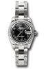 26mm 18K white gold case, fluted bezel, black Jubilee dial, diamond hour markers, and Oyster bracelet.