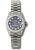 26mm 18K white gold case, case lugs set with 24 diamonds, bezel set with 42 diamonds, dark mother of pearl dial, diamond hour markers, and President bracelet.