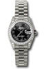 26mm 18K white gold case, case lugs set with 24 diamonds, bezel set with 42 diamonds, black dial, Roman numerals, and President bracelet.