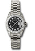 26mm 18K white gold case, case lugs set with 24 diamonds, bezel set with 42 diamonds, black jubilee dial, diamond hour markers, and President bracelet.
