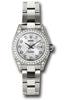 26mm 18K white gold case, case lugs set with 24 diamonds, bezel set with 42 diamonds, silver jubilee dial, diamond hour markers, and Oyster bracelet.