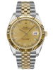 41mm Yellow Rolesor case with 904L steel monobloc middle case, screw-down steel back, 18K yellow gold screw-down crown, 18K yellow gold fluted bezel, scratch-resistant double anti-reflective sapphire crystal with cyclops lens over the date, champagne dial, diamond hour markers, Rolex calibre 3235 perpetual self-winding movement with date at 3 o'clock that changes instantaneously at midnight in a few thousandths of a second, approximately 70 hours of power reserve, yellow Rolesor Jubilee bracelet made from a combination of 904L steel and 18K yellow gold with five-piece links, folding Oysterclasp buckle with Easylink 5mm comfort extension link. Waterproof to 100 meters.