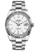 41mm white Rolesor case comprised of a 904L steel monobloc middle case, screw-down steel back, screw-down crown with twinlock double waterproofness system, 18K white gold fluted bezel, scratch-resistant double anti-reflective sapphire crystal with cyclops lens over the date, white dial, index hour markers, Rolex calibre 3235 perpetual self-winding movement with date at 3 o'clock that changes instantaneously at midnight in a few thousandths of a second, approximately 70 hours of power reserve, 904L steel Oyster bracelet with flat three-piece links, folding Oysterclasp buckle with Easylink 5mm comfort extension link. Waterproof to 100 meters.