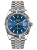 41mm white Rolesor case comprised of a 904L steel monobloc middle case, screw-down steel back, screw-down crown with twinlock double waterproofness system, 18K white gold fluted bezel, scratch-resistant double anti-reflective sapphire crystal with cyclops lens over the date, blue dial, index hour markers, Rolex calibre 3235 perpetual self-winding movement with date at 3 o'clock that changes instantaneously at midnight in a few thousandths of a second, approximately 70 hours of power reserve, 904L steel Jubilee bracelet with five-piece links, folding Oysterclasp buckle with Easylink 5mm comfort extension link. Waterproof to 100 meters.