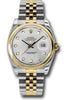 36mm stainless steel case, 18K yellow gold domed bezel, silver dial, diamond hour markers, and stainless steel and 18K yellow gold Jubilee bracelet.