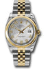 36mm stainless steel case, 18K yellow gold domed bezel, silver concentric circle dial, Arabic numerals, and stainless steel and 18K yellow gold Jubilee bracelet.