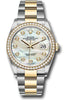 36mm yellow Rolesor case with Oystersteel monobloc middle case, screw-down steel back, screw-down 18K yellow crown, 18K yellow diamond bezel, white mother-of-pearl dial, 10 diamond hour markers, Rolex calibre 3235...