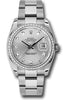 36mm stainless steel case, 18K white gold bezel set with 52 brilliant-cut diamonds, silver dial, diamond hour markers, and stainless steel Oyster bracelet.