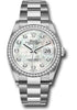 36mm Oystersteel case, screw-down steel back, screw-down crown with twinlock double waterproofness system, diamond bezel, scratch-resistant sapphire crystal with cyclops lens over the date, white mother-of-pearl dial, diamond hour markers, Rolex calibre 3235 perpetual self-winding movement with center hour, minute and seconds hands, instantaneous date at 3 o'clock with rapid setting, and stop-seconds for precise time setting, approximately 70 hours of power reserve, Oyster bracelet with flat three-piece links, folding Oysterclasp buckle with Easylink 5mm comfort extension link. Waterproof to 100 meters. Baselworld 2019 release.