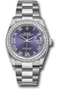 36mm Oystersteel case, screw-down steel back, screw-down crown with twinlock double waterproofness system, diamond bezel, scratch-resistant sapphire crystal with cyclops lens over the date, aubergine dial, Roman numerals with diamond set 6 and 9, Rolex calibre 3235 perpetual self-winding movement with center hour, minute and seconds hands, instantaneous date at 3 o'clock with rapid setting, and stop-seconds for precise time setting, approximately 70 hours of power reserve, Oyster bracelet with flat three-piece links, folding Oysterclasp buckle with Easylink 5mm comfort extension link. Waterproof to 100 meters. Baselworld 2019 release.