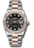 36mm Everose Rolesor case with Oystersteel monobloc middle case, screw-down steel back, screw-down 18K Everose crown, 18K Everose fluted bezel, black dial, 10 diamond hour markers, Rolex calibre 3235 self-winding...
