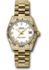 31mm 18K yellow gold case, fluted bezel, case lugs set with 24 diamonds, white dial, Roman numerals, and President bracelet.