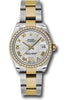 31mm stainless steel case, 18K yellow gold bezel set with 46 diamonds, silver diamond Roman VI dial, Roman numerals with 11 diamonds set on VI, stainless steel and 18K yellow gold Oyster bracelet.
