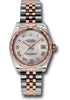 31mm stainless steel case, 18K pink gold domed bezel set with 24 diamonds, mother of pearl dial, Roman numerals, and stainless steel and 18K pink gold Jubilee bracelet.