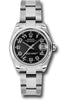 31mm stainless steel case, domed bezel, black concentric circle dial, Arabic numerals, and Oyster bracelet.