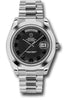 Rolex Oyster Perpetual Day-Date II President 218206 bkcap The Rolex President. 41mm platinum case, polished bezel, black concentric circle dial, black Arabic numerals, and President bracelet.