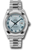 Rolex Oyster Perpetual Day-Date II President 218206 ibcrp The Rolex President. 41mm platinum case, polished bezel, ice blue concentric circle dial, blue Roman numerals and hands, and President bracelet.