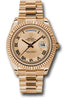 Rolex Oyster Perpetual Day-Date II President 218235 chcrp The Rolex President. 41mm 18K pink gold case, fluted bezel, pink champagne concentric circle dial, Roman numerals, and President bracelet.