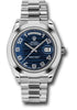 Rolex Oyster Perpetual Day-Date II President 218206 blwap The Rolex President. 41mm platinum case, polished bezel, blue wave dial, Arabic numerals, and President bracelet.