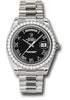 Rolex Oyster Perpetual Day-Date II President 218349 bkrp The Rolex President. 41mm 18K white gold case, bezel set with 42 diamonds, black dial, Roman numerals, and President bracelet.