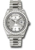 Rolex Oyster Perpetual Day-Date II President 218349 sdp The Rolex President. 41mm 18K white gold case, bezel set with 42 diamonds, silver dial, 8 round and 2 baguette diamond hour markers, and President bracelet..