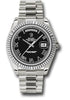 Rolex Oyster Perpetual Day-Date II President 218239 bkrp The Rolex President. 41mm 18K white gold case, fluted bezel, black dial, Roman numerals, and President bracelet.