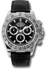 Rolex Oyster Perpetual Cosmograph Daytona 116519 bksbk 40mm 18K white gold case, tachymeter engraved bezel, screw-down push buttons, black dial, and black strap with 18K white gold deployable fliplock clasp.