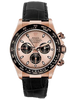 Rolex Oyster Perpetual Cosmograph Daytona 116515LN pbk 40mm 18K Everose gold case, screw-down back, screw-down crown and push buttons with Triplock triple waterproofness, black monobloc Cerachrom bezel with engraved tachymetric scale, scratch-resistant sapphire crystal, pink dial with black subdials, Rolex calibre 4130 automatic movement, black leather strap, Everose gold folding Oysterlock safety buckle. Waterproof to 100 meters.