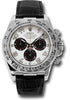 Rolex Oyster Perpetual Cosmograph Daytona 116519 wa 40mm 18K white gold case, tachymeter engraved bezel, screw-down push buttons, white and black dial, and black strap with 18K white gold deployable fliplock clasp.