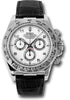 Rolex Oyster Perpetual Cosmograph Daytona 116519 wabk 40mm 18K white gold case, tachymeter engraved bezel, screw-down push buttons, white dial, and black strap with 18K white gold deployable fliplock clasp.