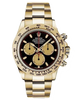 Rolex Oyster Perpetual Cosmograph Daytona 116508 bkchi 40mm 18K yellow gold case, screw-down back, screw-down crown and push buttons with Triplock triple waterproofness, fixed 18K yellow gold bezel with engraved tachymetric scale, scratch-resistant sapphire crystal, black dial, champagne subdials, index hour markers, Rolex calibre 4130 self-winding movement with chronograph central second hand, 30-minute counter at 3 o'clock, and 12-hour counter at 9 o'clock, approximately 72 hours of power reserve, 18K yellow gold Oyster bracelet with flat three-piece links, folding Oysterlock buckle with Easylink 5mm comfort extension link. Waterproof to 100 meters.