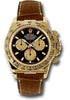 Rolex Oyster Perpetual Cosmograph Daytona 116518 pnbks 40mm 18K yellow gold case, tachymeter engraved bezel, screw-down push buttons, black Paul Newman dial, and brown strap with yellow gold deployable fliplock clasp.