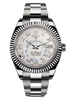 DESCRIPTION: Rolex Oyster Sky-Dweller 42 Watch 326939 iv 42mm 18K white gold case, bidirectional rotatable ring command bezel, ivory satin finish dial, automatic Rolex caliber 9001 movement, second time-zone displayed via off-center rotating disc, Saros annual calendar with date at 3 o'clock and month indicated in discrete apertures at each of the 12 hour marks, 18K white gold Oyster bracelet with Oysterclasp and Easylink extension link. Water resistant to 100 meters.