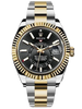 DESCRIPTION: Rolex Oyster Sky-Dweller 42 Watch 326933 bk 42mm yellow Rolesor case comprised of a 904L steel monobloc middle case, screw-down back, screw-down crown, 18K yellow gold fluted bezel with bidirectional rotatable Rolex Ring Command, scratch-resistant sapphire crystal with cyclops lens over the date and double anti-reflective coating, black dial, index hour markers, Rolex calibre 9001 automatic movement , second time-zone displayed via off-center rotating disc, Saros annual calendar with date at 3 o'clock and month indicated in discrete apertures at each of the 12 hour marks, stainless steel and 18K yellow gold Oyster bracelet, folding Oysterclasp buckle with Easylink 5mm comfort extension link. Waterproof to 100 meters.