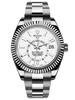 DESCRIPTION: Rolex Oyster Sky-Dweller 42 Watch 326934 wh 42mm white Rolesor case comprised of a 904L steel monobloc middle case, screw-down back, screw-down crown, 18K white gold fluted bezel with bidirectional rotatable Rolex Ring Command, scratch-resistant sapphire crystal with cyclops lens over the date and double anti-reflective coating, white dial, index hour markers, Rolex calibre 9001 automatic movement , second time-zone displayed via off-center rotating disc, Saros annual calendar with date at 3 o'clock and month indicated in discrete apertures at each of the 12 hour marks, stainless steel Oyster bracelet, folding Oysterclasp buckle with Easylink 5mm comfort extension link. Waterproof to 100 meters.
