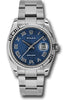 DESCRIPTION: Rolex Oyster Perpetual Datejust 36 Watch 116234 bljro 36mm stainless steel case, 18K white gold fluted bezel, blue jubilee dial, Roman numerals, and Oyster bracelet