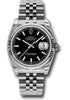 DESCRIPTION: Rolex Oyster Perpetual Datejust 36 Watch 116234 bksj 36mm stainless steel case, 18K white gold fluted bezel, black dial, stick hour markers, and Jubilee bracelet.