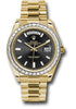 DESCRIPTION: Rolex Oyster Perpetual Day-Date 40 Watch 228239 bkbdp 40mm 18K white gold case, screw-down back with Rolex fluting, screw-down crown with twinlock double waterproofness system, 18K white gold fluted bezel, scratch-resistant double anti-reflective sapphire crystal with cyclops lens over the date, black dial, 10 baguette diamond hour markers, Rolex calibre 3255 automatic movement with centre hour, minute and seconds hands, instantaneous day and date in apertures, unrestricted rapid-setting, and stop-seconds for precise time setting, approximately 70 hours of power reserve, President bracelet with three-piece solid links comprised of a polished center link, satin-finished outer links, and ceramic inserts, concealed folding Crownclasp buckle. Waterproof to 100 meters.