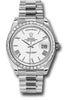 DESCRIPTION: Rolex Oyster Perpetual Day-Date 40 Watch 228396TBR wrp 40mm 950 platinum case, screw-down back with Rolex fluting, screw-down crown with twinlock double waterproofness system, bezel set with 40 baguette-cut diamonds, scratch-resistant double anti-reflective sapphire crystal with cyclops lens over the date, white dial, bevelled deconstructed Roman numerals, Rolex calibre 3255 automatic movement with centre hour, minute and seconds hands, instantaneous day and date in apertures, unrestricted rapid-setting, and stop-seconds for precise time setting, approximately 70 hours of power reserve, President bracelet with three-piece solid links comprised of a polished center link, satin-finished outer links, and ceramic inserts, concealed folding Crownclasp buckle. Waterproof to 100 meters.