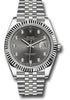 DESCRIPTION: Rolex Oyster Perpetual Datejust 41mm white Rolesor case comprised of a 904L steel monobloc middle case, screw-down steel back, screw-down crown with twinlock double waterproofness system, 18K white gold fluted bezel, scratch-resistant double anti-reflective sapphire crystal with cyclops lens over the date, dark rhodium dial, 10 diamond hour markers, Rolex calibre 3235 perpetual self-winding movement with date at 3 o'clock that changes instantaneously at midnight in a few thousandths of a second, approximately 70 hours of power reserve, 904L steel Oyster bracelet with flat three-piece links, folding Oysterclasp buckle with Easylink 5mm comfort extension link. Waterproof to 100 meters