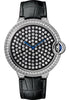 Cartier Ballon Bleu de Cartier Limited Edition of 100 Watch 42 mm rhodiumized 18K white gold case set with 210 brilliant-cut diamonds totaling 3.38 carats, fluted crown set with a sapphire cabochon, 18K white gold nac-treated dial set with 123 vibrant, caliber 430 MC manual movement, rhodiumized 18K white gold double adjustable folding buckle.