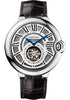 Cartier Ballon Bleu Flying Tourbillon Watch Extra large size (46mm) 18K white gold case, transparent back, slate colored galvanic dial with guilloché finish and sun satin finished grid, manual winding calibre 9452-MC movement, approximately 50 hours of power reserve, alligator strap with 18K gold double adjustable deployant buckle.