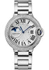 Cartier Ballon Bleu de Cartier Moonphase Watch 37mm 18K white gold case, diamond paved bezel, sapphire crystal, silver dial with blued-steel sword-shaped hands, self-winding movement with hours, minutes, and moonphase, 18K white gold bracelet. Water resistant to 30 meters.