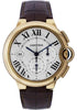 Extra Large (46.8mm x 47.1mm) 18K yellow gold case, transparent back, silvered guilloché and lacquered dial with sun-like finish, automatic winding calibre 8101 MC movement with chronograph function, alligator strap with 18K gold double deployant buckle. Water resistant to 30 meters.