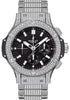 Hublot Big Bang Evolution Steel Diamonds Watch 44mm stainless steel case set with 212 diamonds (1.08 ct), stainless steel bezel set with 114 diamonds (1.78 ct), black composite resin lateral inserts and bezel lugs, mat black dial, self winding HUB 4100 movement with chronograph function, approximately 42 hours of power reserve, stainless steel bracelet with central links paved with 576 diamonds (7.41ct). Water resistant to 100 meters.