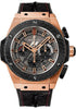 Hublot Big Bang F1 King Power Great Britain Limited Edition of 250 Watch 48mm 18K satin-finished King gold case, brake disc designed black ceramic bezel, black composite resin lateral inserts and bezel lugs, multi-layered black and grey dial with basketball decoration, self winding HUB 4100 movement with chronograph function, approximately 42 hours of power reserve, red stitched black rubber and hornback crocodile leather strap with 18K King gold and black PVD titanium deployant buckle. Water resistant to 100 meters.