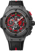 Hublot Big Bang King Power Red Devil Limited Edition of 500 Watch 48mm microblasted black ceramic case, microblasted black ceramic bezel black rubber moulding, sapphire dial with indexes made from grass from the hallowed turf of Manchester United's Old Trafford stadium and Red Devil logo, self winding HUB 4245 movement with chronograph function, approximately 42 hours of power reserve, black rubber strap with deployant buckle. Water resistant to 100 meters.