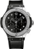 41 mm polished stainless steel case, polished stainless steel bezel set with 114 diamonds (~1.18 cts) and 6 H-shaped titanium screws, sapphire crystal with anti-reflective treatment, lacquered black dial with indexes set with 8 diamonds (~ 0.14cts) and rhodium-plated appliques and hands, HUB4300 self-winding chronograph movement, approximately 42 hours of power reserve, black rubber and shiny calf strap, stainless steel and black PVD stainless steel deployant buckle. Water resistant to 100 meters.